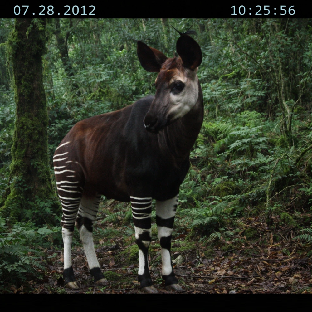 Then there is the okapi, an animal so visually improbable that it was once compared to a unicorn. The African Wildlife Foundation reported that camera traps set by the Zoological Society of London and the Congolese Institute for Nature Conservation captured the first photographs of okapi in the wild in Virunga National Park. With its giraffe-like build, velvet-dark coat, and zebra-striped legs, the okapi already looks as though it were assembled from several different species, which helps explain why those first camera-trap images were so captivating. (African Wildlife Foundation)